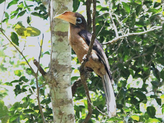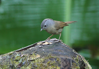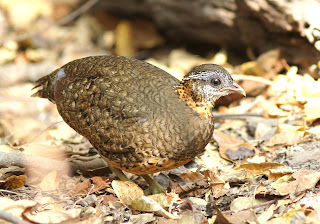 At dawn we again headed into the park, it felt cold, but the fog wasn't as bad, we saw a great selection of pigeons at a stop on the way, with Wedge-tailed, Pin-tailed and Thick-billed Green Pigeon and Mountain Imperial Pigeon in one fruiting tree, along with at least four fly over Barred Cuckoo Dove. Higher up the mountain the weather deteriorated further, becoming colder, winder and wetter, we stopped at a blind which overlooks a stream, a few birds were present here including several Streaked Wren Babbler, 2 White-tailed Robin, a pair of Buff-breasted Babbler, Blue Whistling Thrush and a Hill Blue Flycatcher.