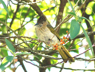 We hung around the campsite at Chong Yen for several hours, the Flavescent Bulbul's keeping us amused for a while, followed by a pair of Silver-eared Mesia. In a slightly brighter spell of weather we ventured down the Umphang Trail, a number of fruiting and flowering trees, attracted a nice selection of species, which included a very obliging Small Niltava, Speckled Piculet and several Black-throated Sunbird. Species seen in a fast moving, mixed species feeding flock included, Golden-throated Barbet, a male Clickling Shrike Babbler, Lesser Racket-tailed Drongo, Yellow-cheeked Tit, Claudia's and Davison's Leaf Warbler, Sulphur-breasted Warbler and a White-tailed Robin. By mid-afternoon the fog closed in again, so we decided to head down the mountain in search of better weather, finding only more rain and fog, things were brighter but wet at the resort and we abandoned birding for the day, convinced the weather could not be any worse the next day.